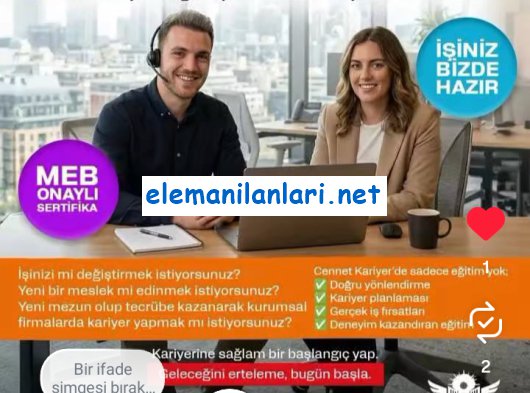 Eleman ilanlarına BAŞVURU yapmak için üye olmanıza veya özgeçmiş oluşturmanıza gerek yoktur. İLAN İLETİŞİM veya WHATSAPP butonlarını tıklayıp, firma yetkilileri ile görüşerek online başvuru yapabilirsiniz.