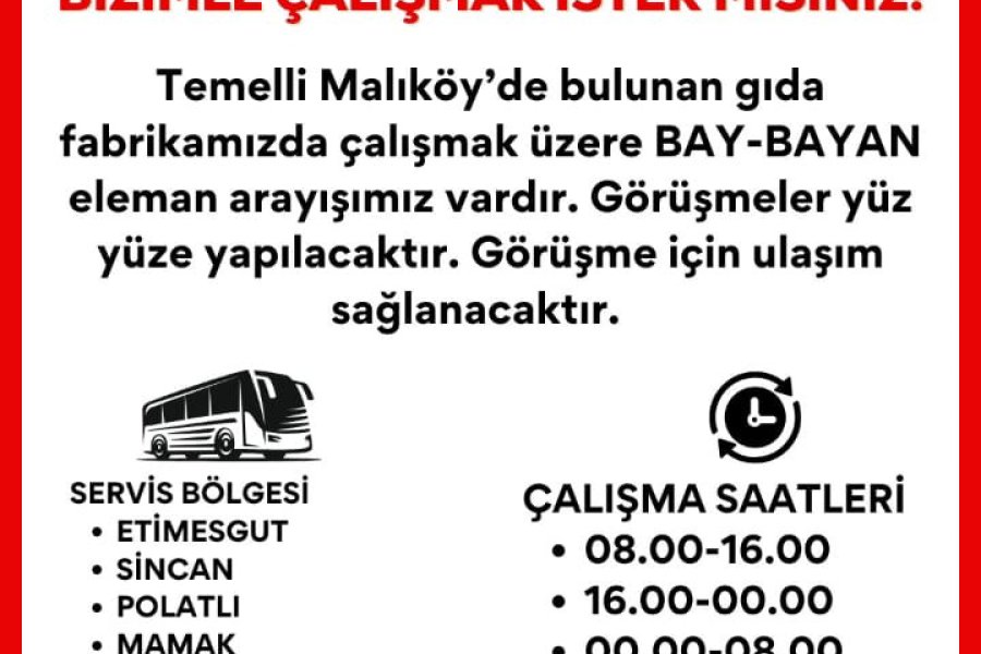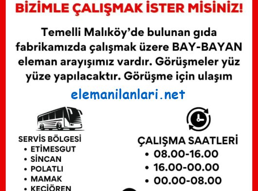 Eleman ilanlarına BAŞVURU yapmak için üye olmanıza veya özgeçmiş oluşturmanıza gerek yoktur. İLAN İLETİŞİM veya WHATSAPP butonlarını tıklayıp, firma yetkilileri ile görüşerek online başvuru yapabilirsiniz.